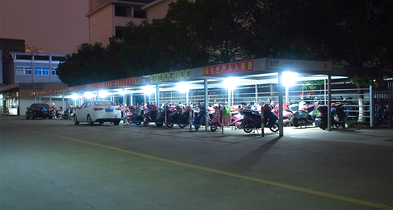 公司车棚为员工的车子遮风挡雨,改造后的停车棚增加了照明设备,在夜间更是一道靓丽的风景线,照明设备为出行的员工带来了大大的便利,方便员工在下班时开车回家,保障了员工的平安出行。