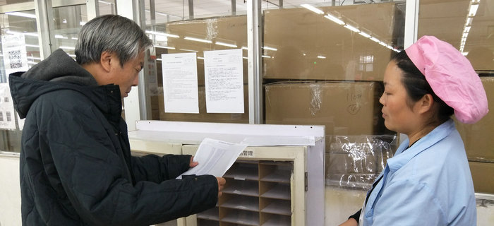 近期,日本三菱株式会社孙陆宇教授受刘潭服装邀请,来我司指导工作。2017年11月15日,他受邀对刘潭服装各生产车间和部门负责人、业务员进行生产现场指导。